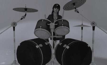 Audrey Pearl "Stix" is plain crazy. No one is really sure when Addy showed up? Vix and Muave got into a bar brawl and Addy jumped in to help. After crashing at the apartment that night, she just never left. And at some point, she ended up being a monster behind the drumkit. Mai says Audrey is the constant energy of the band, never taking time to sit down or slow down. Often a bad influence on Vix, the two are always in trouble. Addy and Muave, however are always at odds. Anytime the band takes a break it usually stems from the two of them fighting. Addy spends her time shooting guns at the gun range and hunting. Gambling, extreme sports and a unhealthy amount of drugs. Drawing inspiration from drummers like The Rev, Joey Jordison and Mike Portnoy. Sometimes, Addy rips into drum patterns no one has ever heard or may ever need to hear. On stage Audrey wears cute black dresses, fishnets and big black boots. Her hair always in the classic braids that Vixon does for her. Off stage she wears leggings, denim and Vans.