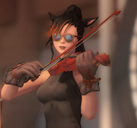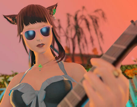 Luv "Molly McConnell" Secretz is often called the quiet one, until you put a guitar in her hands. Mai is always saying she is the glue holding the band together. Always the voice of reason. Luv spends her time riding motorcycles and driving sports cars. When the other members go out and party, Luv stays behind to practice her craft. Luv spends as much time away from the band as possible. Always saying the band is drama and she don't need drama. Only respecting Mai, their professional bond is strong and their passion to be great is the one thing they have in common. Addy jokingly calls Luv and Mai, Peanut Butter and Jelly, separate they are good, but together they are amazing. Like Mai and Vix, Guns N Roses is a big influence on Luv, not just Slash but Izzy as well. When it comes to inspiration however, Luv inspires to be her own. Former guitarist of the Meowsfits, Luv is quite possibly the most underrated guitarist in Eorzea. However, not for much longer! In game Luv is showcased with Overdriven Guitar mixed with some Clean & Muted. What Luv is known for however, is her dirty Pick slides (Special Guitar.) On Stage Luv wears all black, dresses, skirts and revealing tops, usually with heals. Sometimes dawning the iconic top hat made famous by Slash. Off stage Luv wears pretty much the same, a diva on and off the stage, The true Princess of the Band.Dating Status: Unavailable