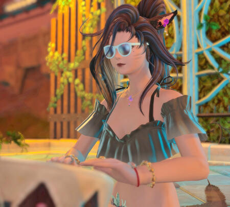 Mai "Mairead Kallner" Mizuhara grew up in Old Sharlayan, an only child that some would say was spoiled. Mai never really aspired to be a musician or play music. She spent her younger years in modeling, television and talent showcases. Known for her stunning beauty and infectious personality. In college Mai met Vixon and Luv at a Kapa Beta Pie party and became instant friends. After a long night of drinking, the girls were stumbling home when Mai randomly started singing "I Believe in a Thing Called Love" by The Darkness. Vix and Luv stared at each other dumb founded. This was the voice they were looking for and it was here in front of them the whole time. At the time Vixon, Luv and Muave had a Irish Punk band named Molly's Mulligan. They would all later adopt stage names to form the band name Mai Secret Valentine. These days, Mai is quiet, keeps mostly to herself and is often found relaxing in her private cabin in The Lavender Beds sipping wine by the fire. Although it isn't something she wants, Mai is often looked to as the leader of the band. Using her charm and beauty to book shows and high end venues. Draws inspiration from Axl Rose, Amy Lee and Lzzy Hale to name a few. Mai's voice in game is represented by panpipes and clarinet for the breathy melodic sound. On stage Mai wears black long dresses with high heel boots. When not on stage Mai is often wearing sweat pants and hoodies. Mai's Stage name came from people calling her Mai for short. When she isn't touring with MSV, Mai is also in a band called Second Hand Embarrassment.Dating Status: Evalina Laluna